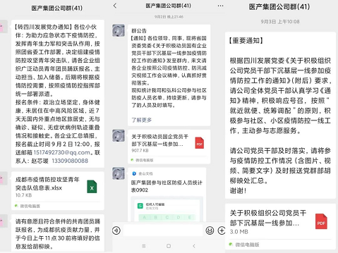 自成都市“8.25”疫情防控阻击战打响的第一天,赏金船长官网医药产业集团党总支迅速贯彻落实四川发展党委部署,第一时间号召全体党员按照“就近就便、统筹调配”的原则,积极参与社区、小区疫情防控一线工作,主动参与志愿服务,连续数日不分昼夜进行组织动员,用一抹“志愿红”筑起群防群控守护“健康绿”的坚固防线。